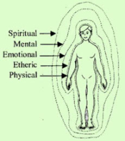 abbiamo al centro, visibile, il corpo fisico, intorno il corpo eterico